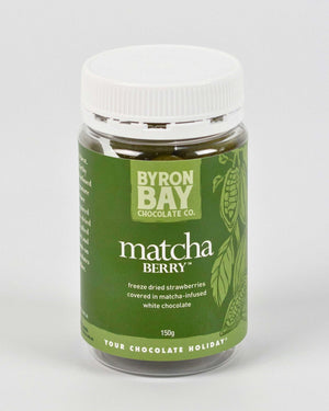 Earthy Japanese matcha blended through creamy white chocolate and paired with freeze-dried strawberries.