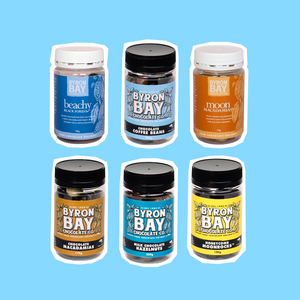 Experience the flavours of our coastal home with A Taste of Byron — a curated selection of six signature jars that capture the essence of Byron Bay. From sun-soaked beaches to hinterland mornings, each jar tells a story of indulgence, connection, and pure chocolate bliss.