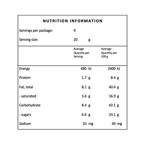 May be present: almond, macadamia, peanut, cashew, hazelnut, wheat, milk
