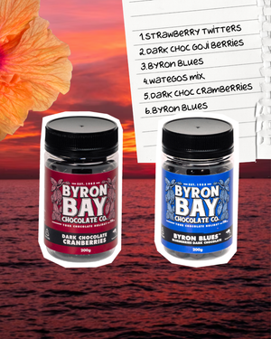 •2 x Byron Blues®: Naturally sweet and tangy dried blueberries paired with our signature dark couverture chocolate create the perfect bite bursting with flavour.
