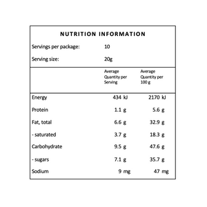 May be present: macadamia, almond, peanut, cashew, hazelnut, wheat