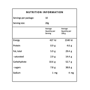 May be present: almond, macadamia, peanut, cashew, hazelnut, wheat, milk