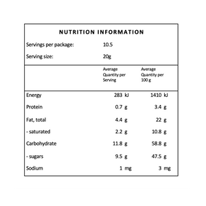 May be present: almond, macadamia, peanut, cashew, hazelnut, wheat, milk