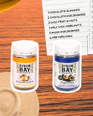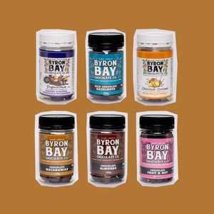 Our Nut Lovers Box is a Byron-born classic. Packed with six of our most loved nutty creations, each one handcrafted to perfection using locally roasted nuts and our signature couverture chocolate.